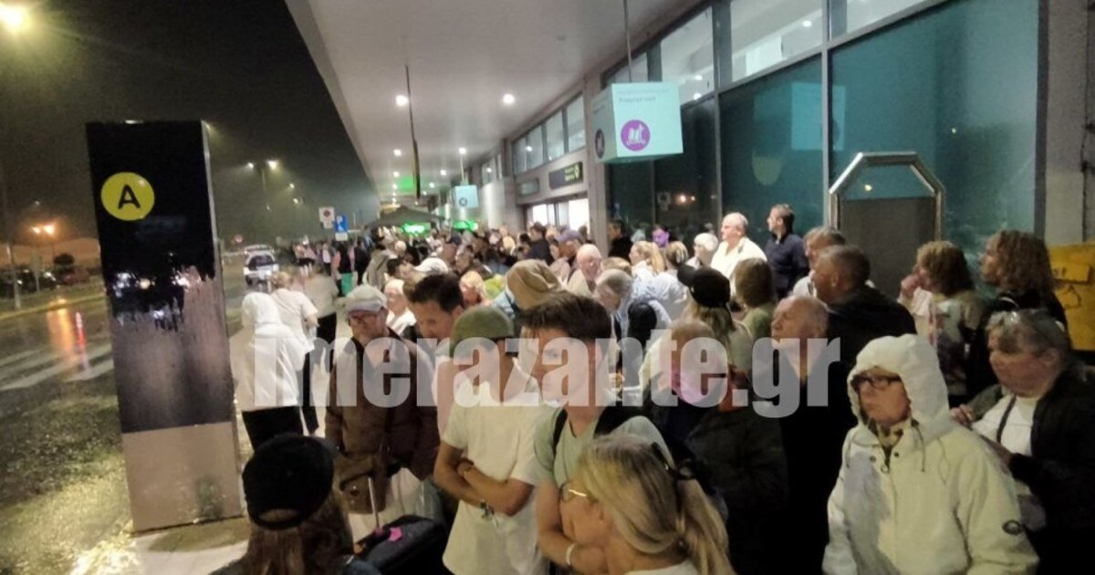 Εκατοντάδες τουρίστες έμειναν για πολλές ώρες αποκλεισμένοι στο αεροδρόμιο Ζακύνθου χθες το βράδυ εξαιτίας της σφοδρής κακοκαιρίας που έπληξε το νησί.