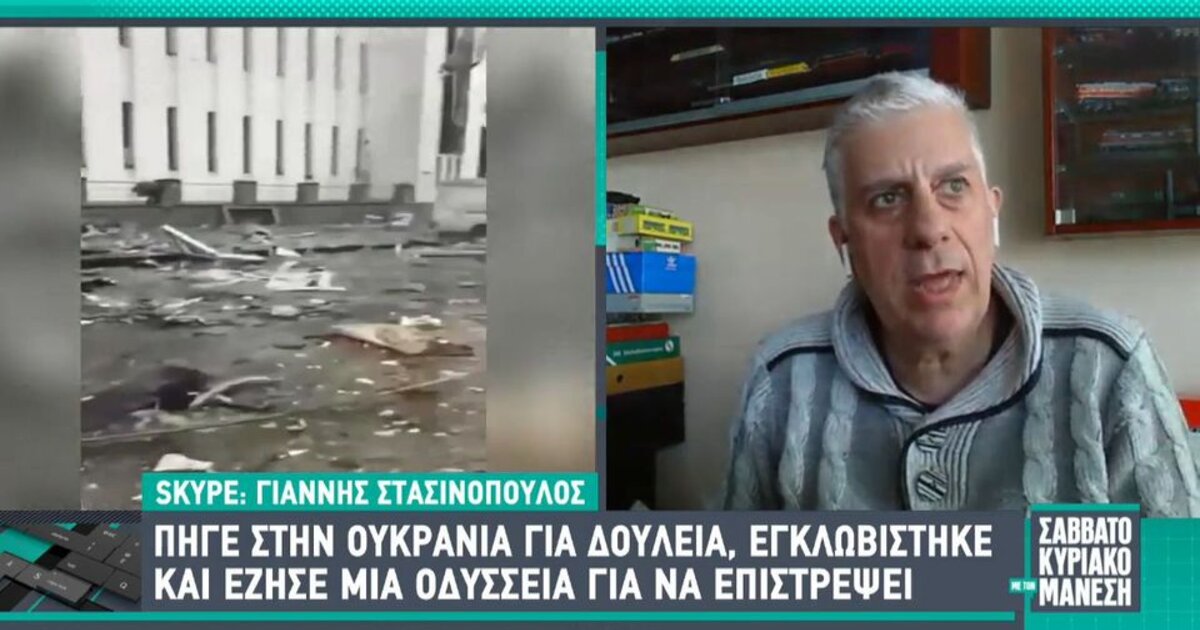 Ο Γιάννης Στασινόπουλος ο οποίος είδε το Κιέβο να βομβαρδίζεται αποφάσισε να πάρει το αυτοκίνητο του και να φύγει! Μιλώντας στην εκπομπή «Σαββατοκύριακο με τον Μάνεση» περιγράφει τον απίστευτο Γολγοθά που έζησε μέχρι να φτάσει στην Ελλάδα.