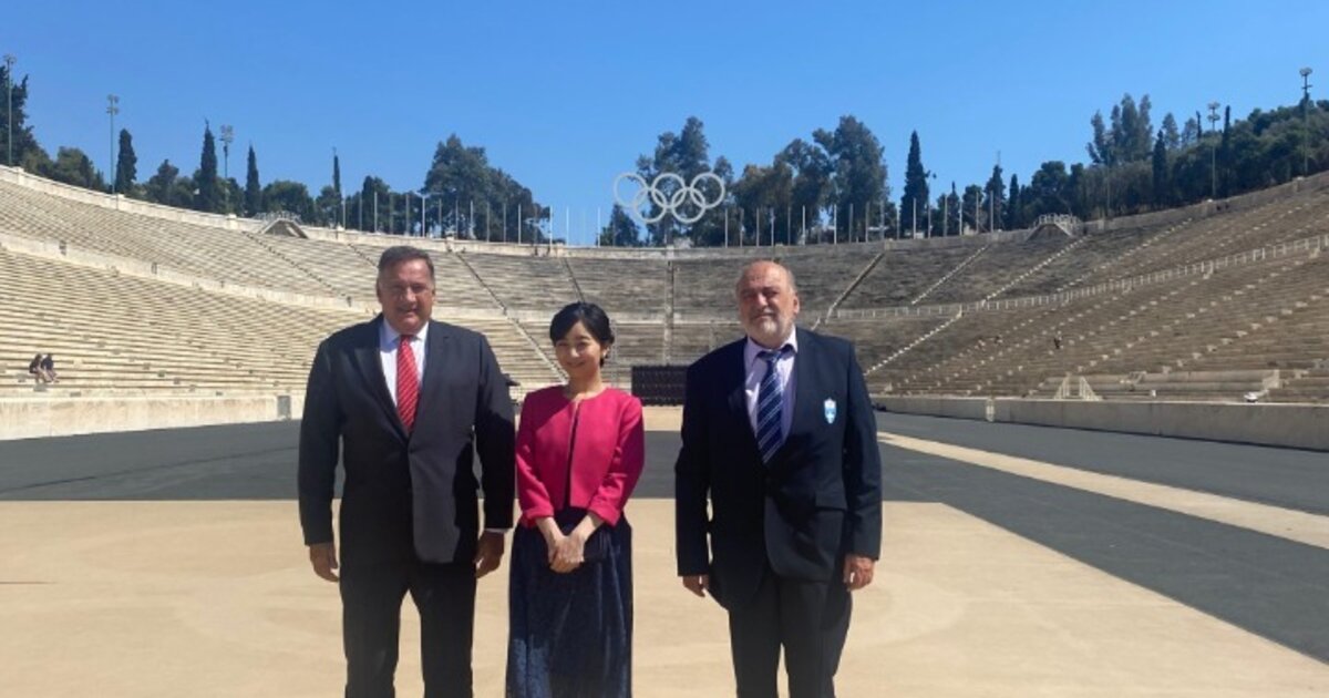 Την Πριγκίπισσα Κάκο του Ακισίνο υποδέχθηκαν και ξενάγησαν στο Καλλιμάρμαρο, ο πρόεδρος της Ελληνικής Ολυμπιακής Επιτροπής, Σπύρος Καπράλος και ο γενικός γραμματέας, Εμμανουήλ Κολυμπάδης.