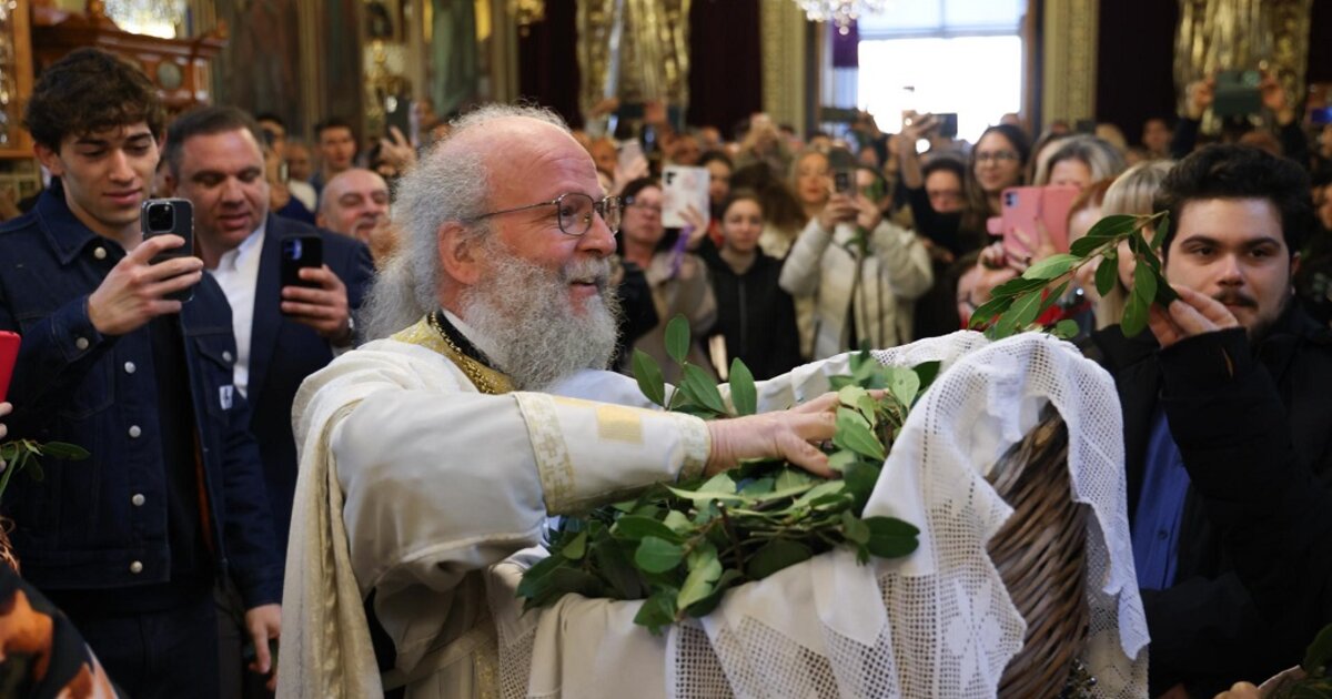 Ο ιερέας πέταξε βάγια με το καθιερωμένο σάλτο του για την πρώτη Ανάσταση