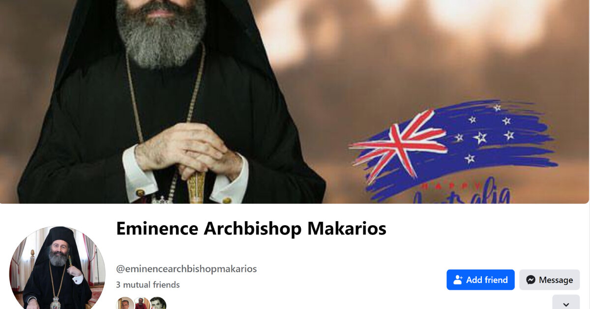 Ιερά Αρχιεπισκοπή Αυστραλίας: Ενημέρωση περί ψεύτικου προφίλ του Αρχιεπισκόπου Μακαρίου στο Facebook
