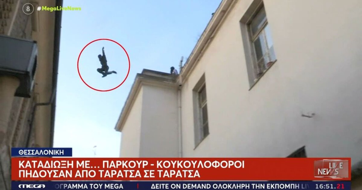 Ένα σάλτο και ο νεαρός περνά άνετα από τη μια ταράτσα στην άλλη για να αποφύγει τη σύλληψη.