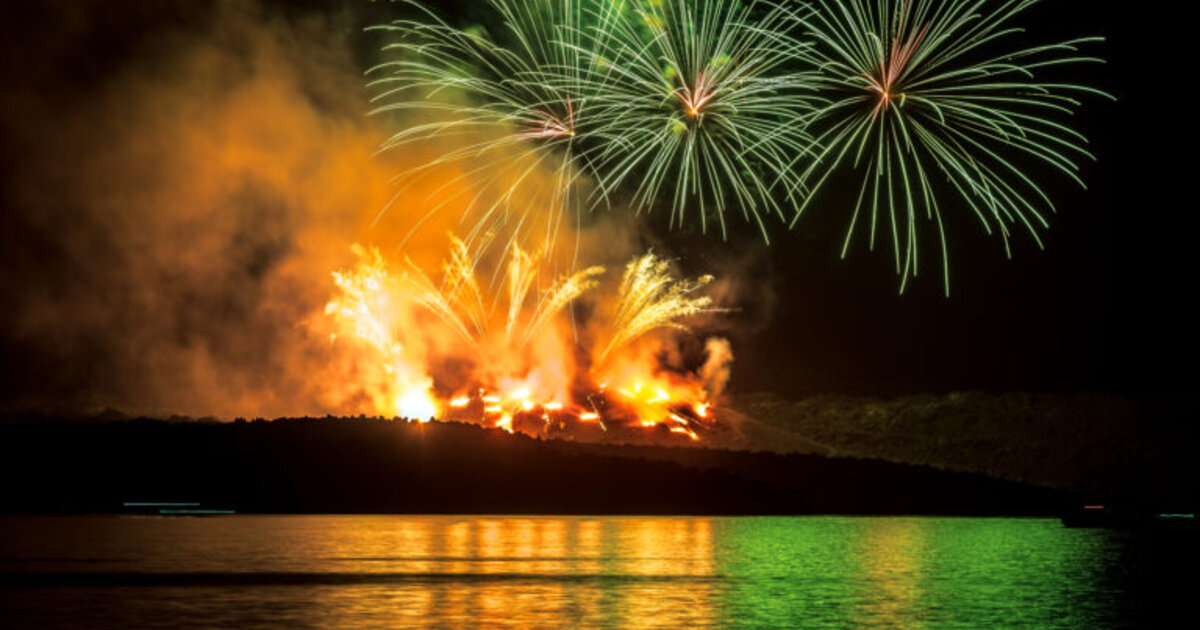 Ηφαίστεια 2022: Εντυπωσιακές ρίψεις πυροτεχνημάτων στην αναπαράσταση της έκρηξης του ηφαιστείου