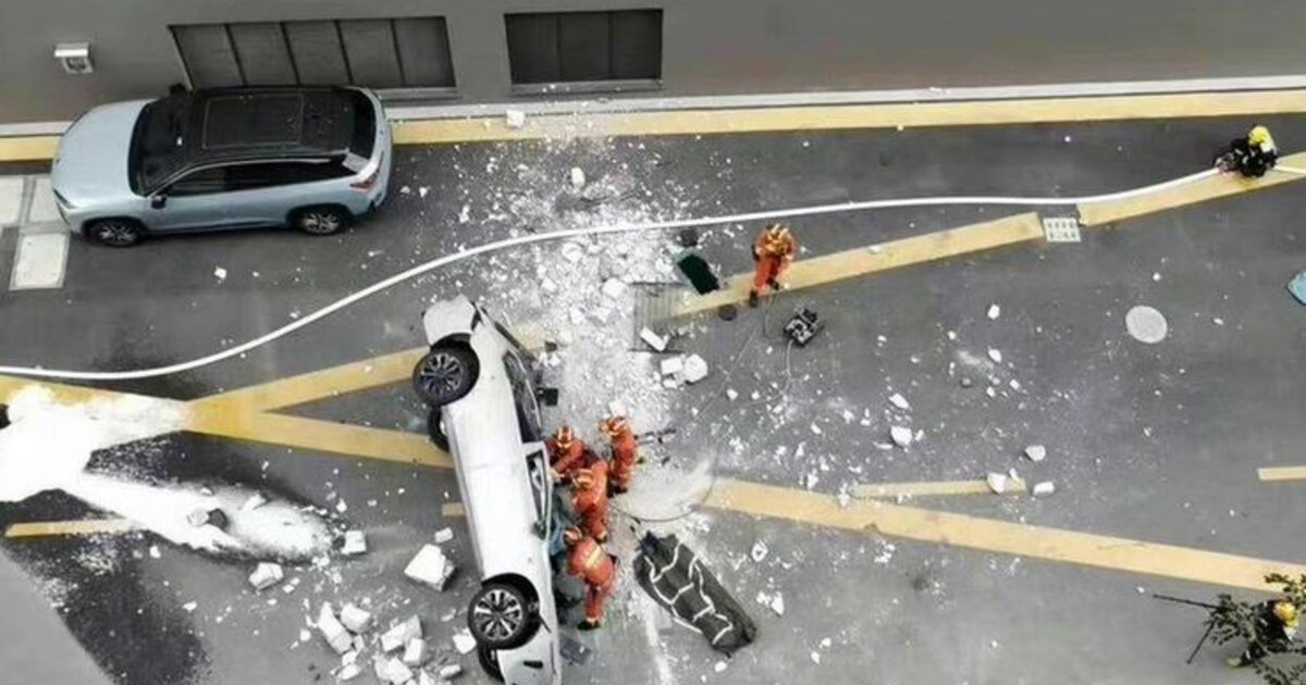 Terrible story of two test drivers at #China’s electrical vehicle manufacturer NIO being killed when a car somehow smashed out of a building and came crashing down from a great height. pic.twitter.com/4ZNI2t7LqZ