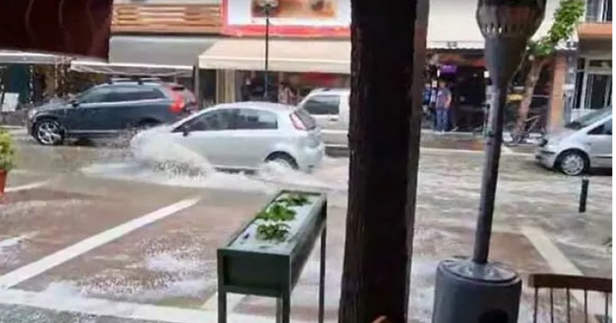 Από την ισχυρή νεροποντή οι δρόμοι μετατράπηκαν σε ποτάμια.