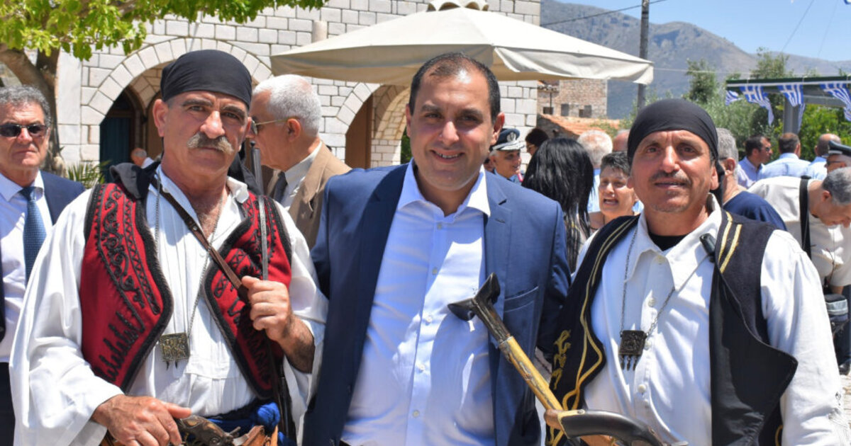 Ο υφυπουργός Προστασίας του Πολίτη Κώστας Κατσαφάδος εκπροσώπησε τον πρωθυπουργό Κυριάκο Μητσοτάκη στις επετειακές εκδηλώσεις της Μάχης του Διρού, που πραγματοποιήθηκαν σήμερα Κυριακή 2 Ιουλίου στο Διρό της Μάνης.