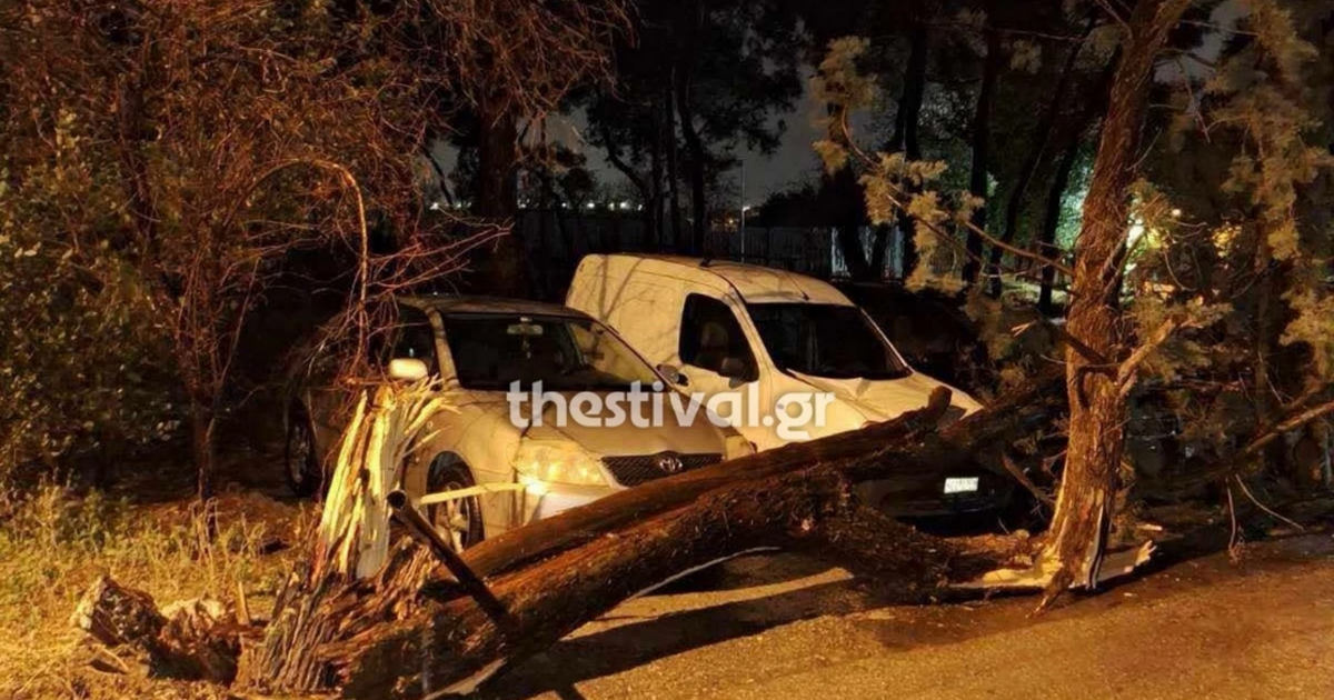 Σε τουλάχιστον δύο περιπτώσεις, στο κέντρο της πόλης αλλά και στην Τούμπα, στην οδό Κλεάνθους δέντρα έπεσαν πάνω σε οχήματα προκαλώντας φθορές.