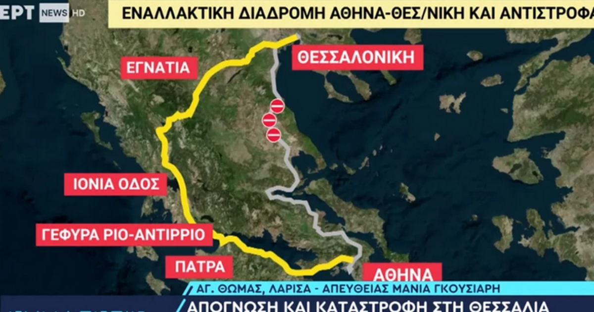 Κλειστή για 4η ημέρα παραμένει η Εθνική Οδός Αθηνών Θεσσαλονίκης στο ύψος της Θεσσαλίας, καθώς η περιοχή έχει μετατραπεί σε μία απέραντη λίμνη λόγω της κακοκαιρίας Daniel. Η χώρα έχει κοπεί στα δύο ενώ όσο επιθυμούν να ταξιδέψουν προς τον Βορρά μπορούν να ακολουθήσουν εναλλακτική διαδρομή με δωρεάν διόδια.