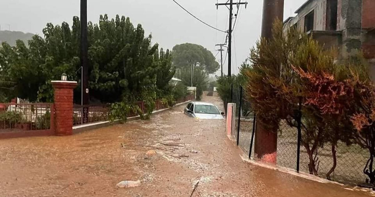 Ο χείμαρρος Κραυσίδωνας σε πολλές περιοχές έχει ξεχειλίσει και τα νερά πλημμυρίζουν δρόμους, καταστήματα και ισόγεια κατοικιών στη Χιλιαδού, το Οινόπνευμα, στους Αγίους Αναργύρους, την Νεάπολη και τα Παλαιά.