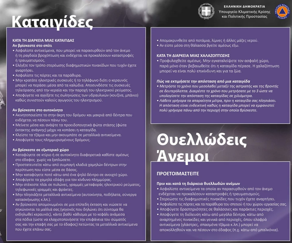 Οδηγίες στους πολίτες ενόψει της κακοκαιρίας EVA
