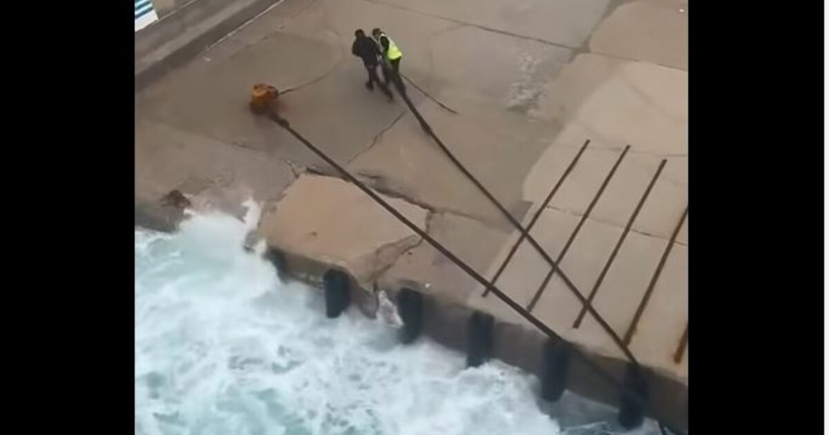 Οι ισχυροί άνεμοι είχαν προκαλέσει έντονο κυματισμό με αποτέλεσμα το νερό να «πλημμυρίζει» την αποβάθρα, ενώ εργαζόμενοι προσπαθούσαν για αρκετή ώρα να δέσουν τα σχοινιά στον κάβο.