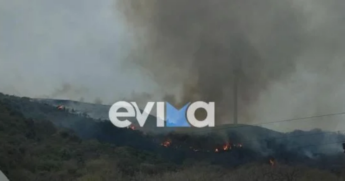 Κάρυστος: Καλύτερη η εικόνα της φωτιάς – Επιχειρεί ελικόπτερο