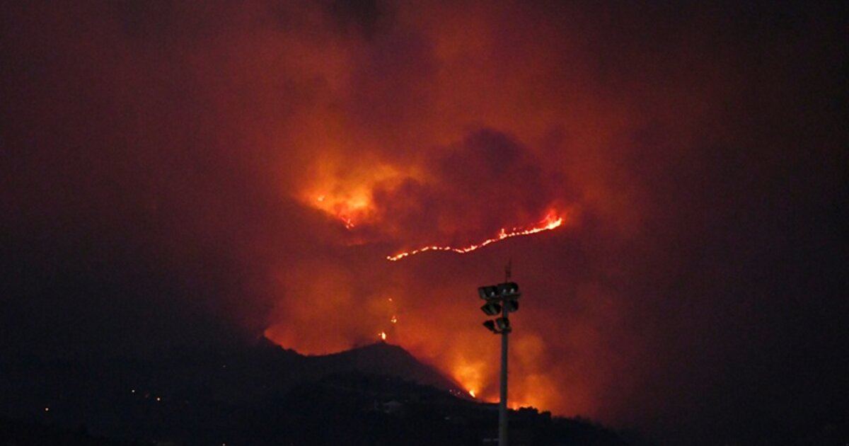 Η φωτιά είναι σε απόσταση από κατοικήσιμες περιοχές, σε δύσβατο σημείο και δεν απειλεί οικισμούς.