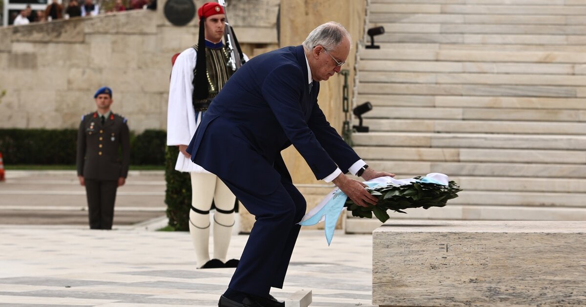 Ο Πρόεδρος της Δημοκρατίας Κωνσταντίνος Τασούλας κατέθεσε στεφάνι στο Μνημείο του Άγνωστου Στρατιώτη, πριν παρακολουθήσει την μεγάλη στρατιωτική παρέλαση της Αθήνας για την Εθνική Επέτειο της 25ης Μαρτίου.
