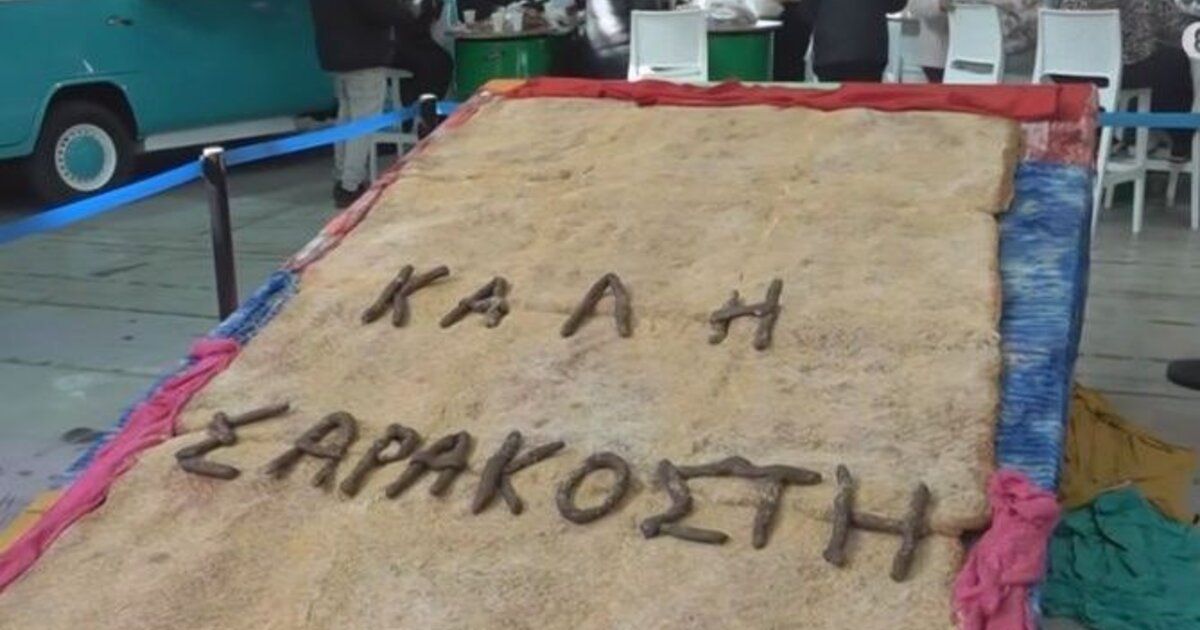 Η μεγαλύτερη λαγάνα 240 κιλών ετοιμάστηκε για την Καθαρά Δευτέρα στο Περιστέρι και μοιράστηκε στους πολίτες.