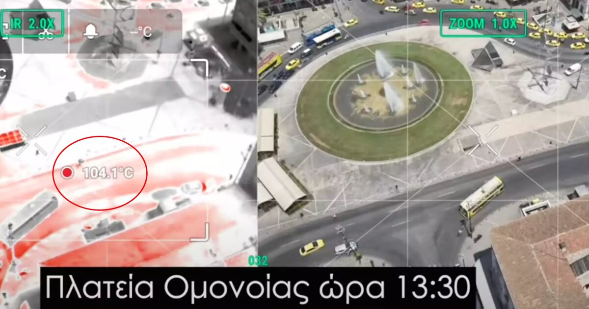 Ο καύσωνας καλά κρατεί και είναι εντυπωσιακό το γεγονός ότι το Up Stories σε συνεργασία με το meteo του Eθνικού Aστεροσκοπείου Αθηνών και την τεχνολογική υποστήριξη του Drone House κατέγραψε αδιανόητες θερμοκρασίες στο κέντρο της Αθήνας.
