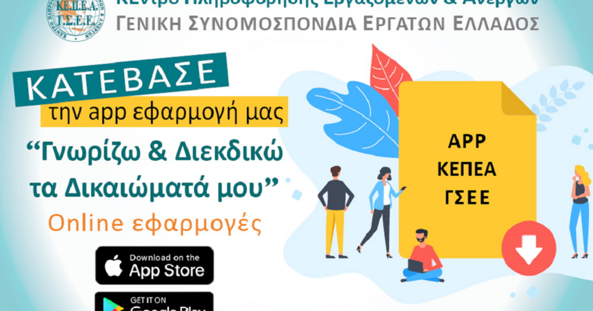 «Η app εφαρμογή κινητών τηλεφώνων αποτελεί ένα δωρεάν χρήσιμο εργαλείο πληροφόρησης που τίθεται στην διάθεση των εργαζομένων από το ΚΕΠΕΑ της ΓΣΕΕ, ώστε να γνωρίζουν και να διεκδικήσουν τα δικαιώματά τους μαζί με τα οργανωμένα συνδικάτα τους», αναφέρει το Κέντρο Πληροφόρησης Εργαζομένων και Ανέργων της ΓΣΕΕ.
