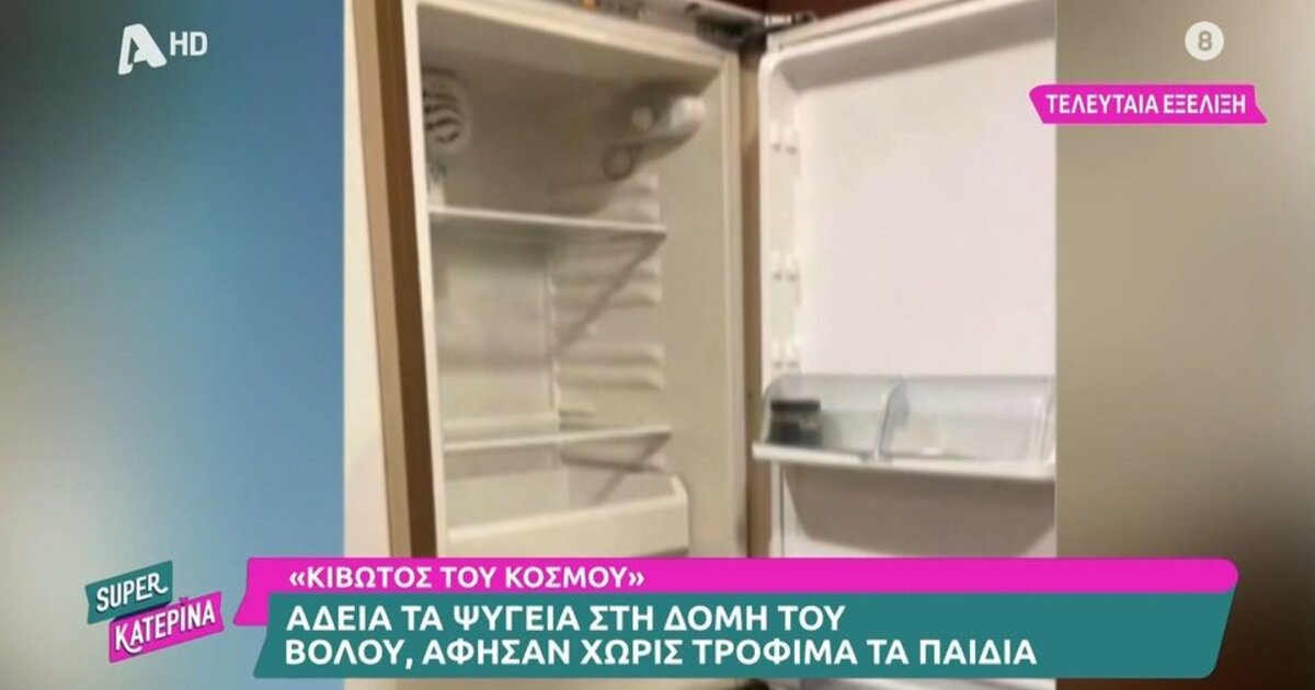Όπως παρουσίασε η εκπομπή «Super Κατερίνα», στη δομή του Βόλου, τα ψυγεία έχουν αδειάσει και τα παιδιά που παραμένουν εκεί είναι χωρίς τρόφιμα.