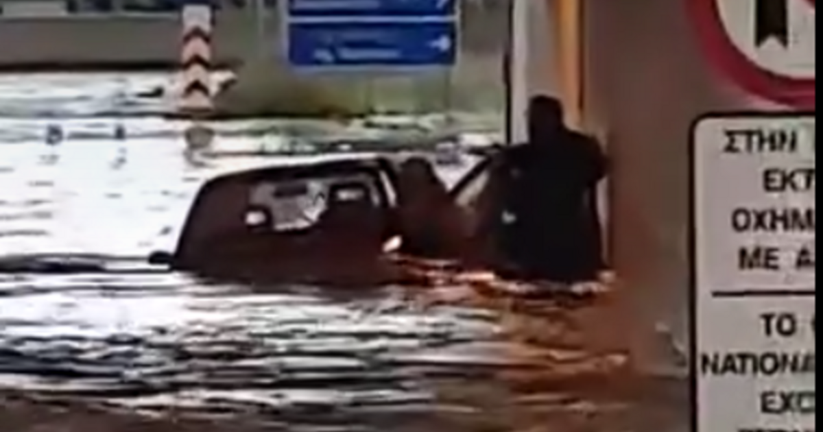 Μια γυναίκα εγκλωβίστηκε με το αυτοκίνητό της κάτω από τη γέφυρα μέχρι που τα νερά κάλυψαν το όχημα.