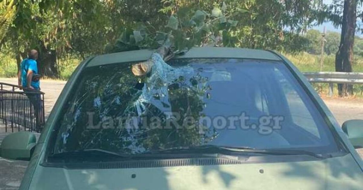 Κλαδί δέντρου «καρφώθηκε» σε παρμπρίζ εν κινήσει αυτοκινήτου