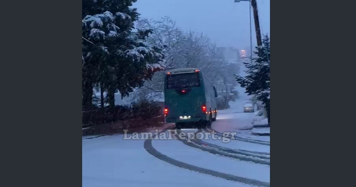 «Κόλλησε» στα χιόνια λεωφορείο με μαθητές στην Υπάτη
