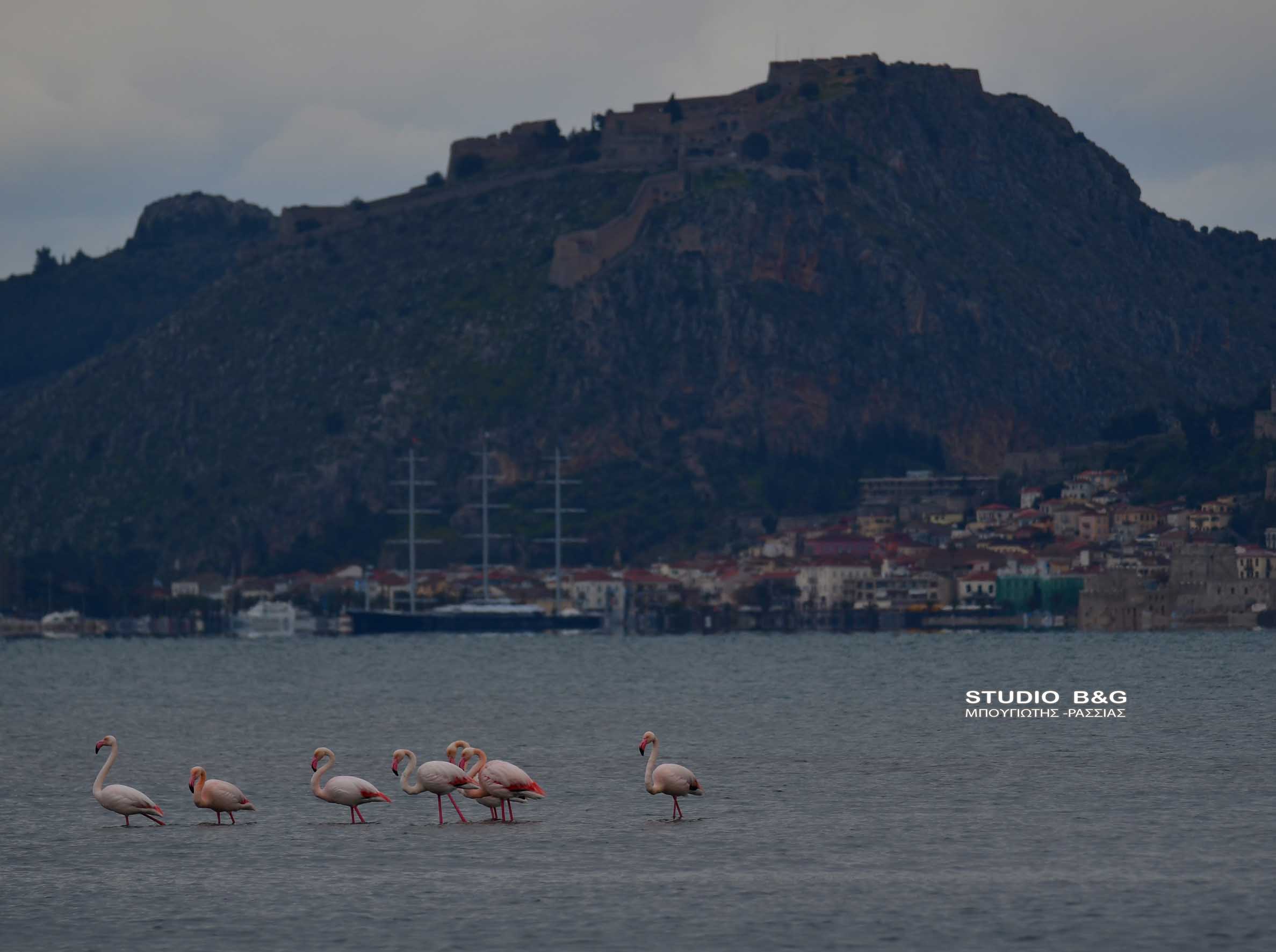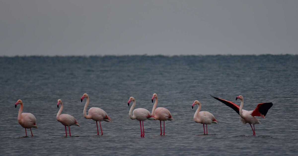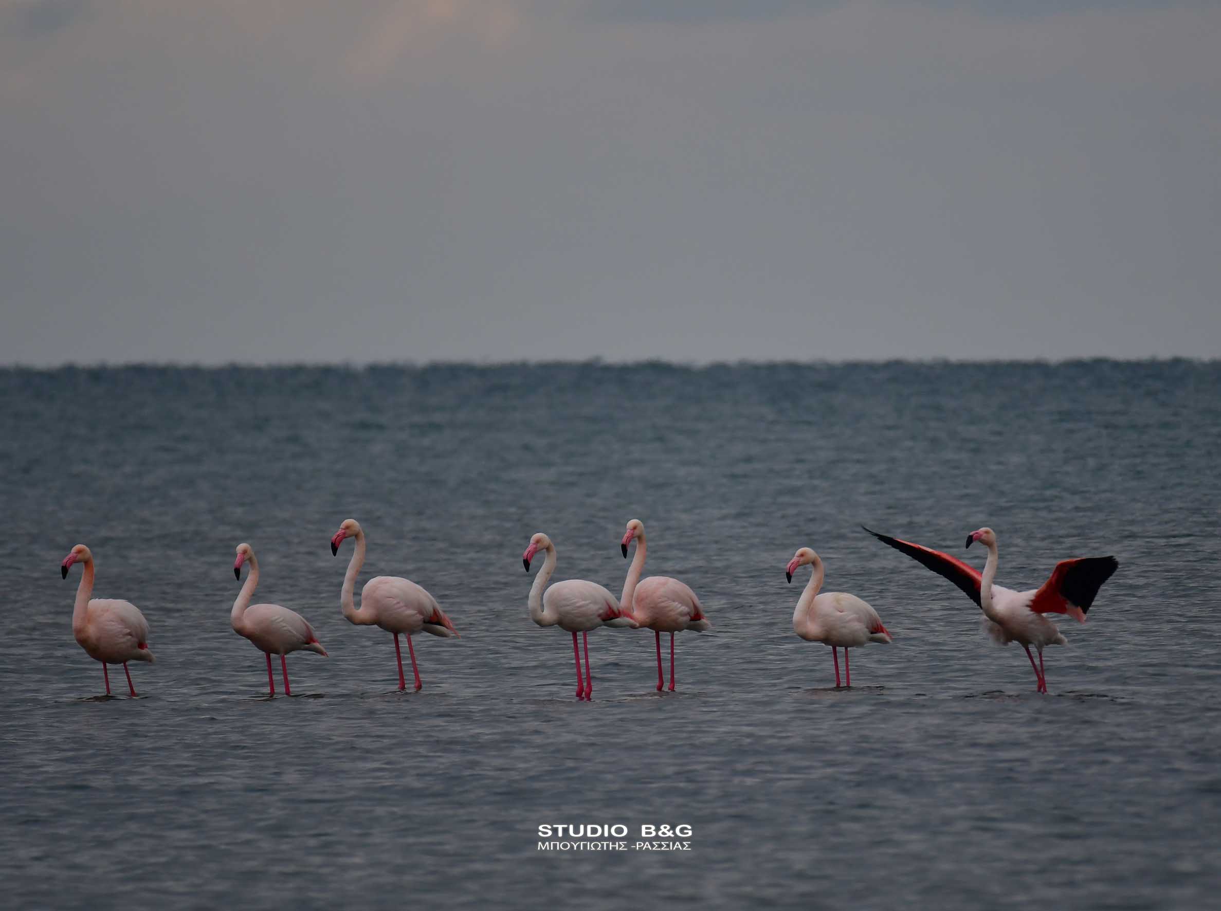 Κοπάδι από οκτώ πανέμορφα πτηνά το είδος φλαμίνγκο ξεκουράζονται στον Υδροβιότοπο της περιοχής μεταξύ του Ναυπλίου και της Νέας Κίου στην Αργολίδα, Τρίτη 22 Μαρτίου 2022.