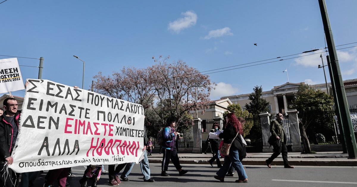 Ας σπάσουμε τον φόβο και την οικονομική επισφάλεια που είμαστε δύο χρόνια τώρα και ας στηρίξουμε με τη στάση μας τους φοιτητές των δραματικών σχολών που είναι 40 ημέρες μπροστά στον αγώνα αυτό», αναφέρει στην ανακοίνωσή του το Σωματείο Ελλήνων Ηθοποιών.