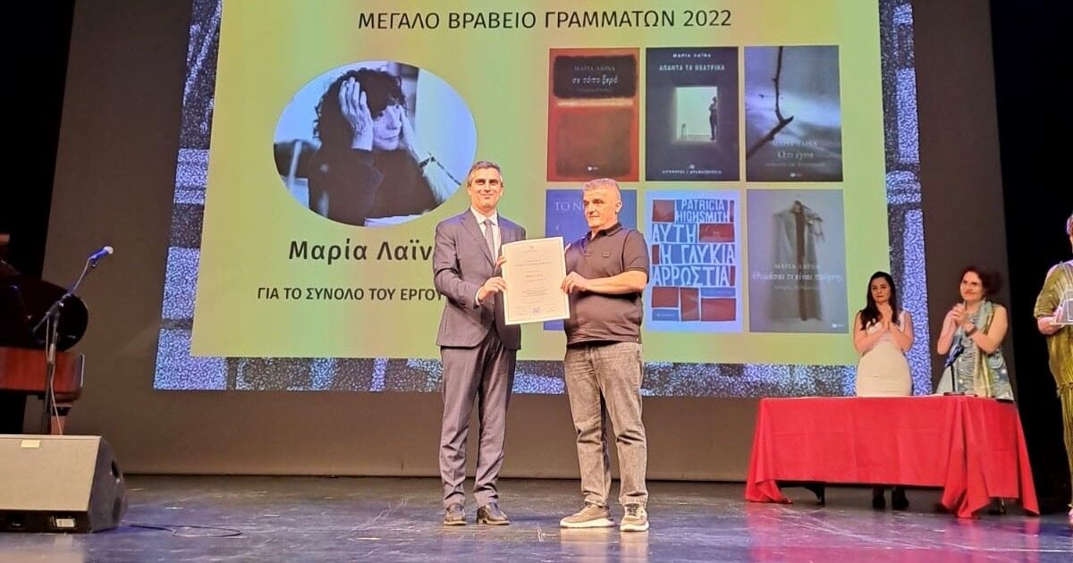 Η κορυφαία διάκριση της βραδιάς, το Μεγάλο Βραβείο Γραμμάτων 2022, απονεμήθηκε στη Μαρία Λαϊνά (απεβ. 27/12/23), ενώ το Μεγάλο Βραβείο Γραμμάτων 2023, στη Ρέα Γαλανάκη για τη συνολική προσφορά τους στα Γράμματα.