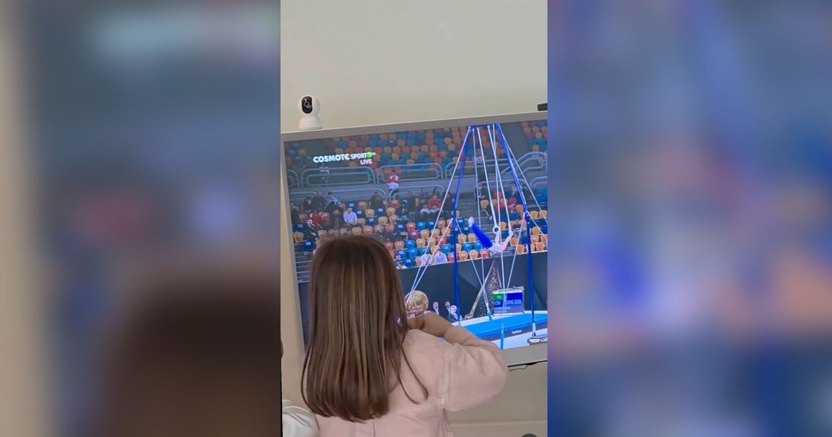 Στο βίντεο που ανάρτησε, τα παιδιά του ζευγαριού παρακολουθούν τον πατέρα τους να αγωνίζεται με ενθουσιασμό και έστελναν "καρδούλες" εμψυχώνοντάς τον από μακριά.