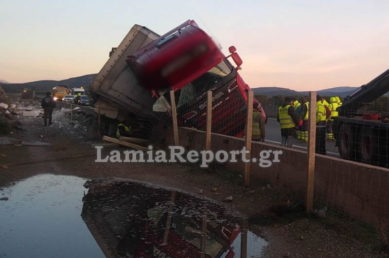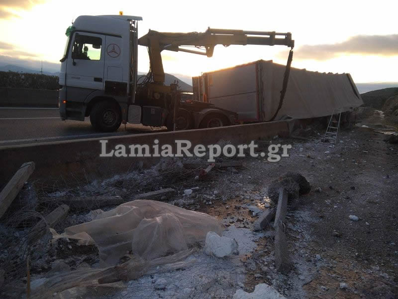 Λαμία: Εκτροπή νταλίκας τα ξημερώματα στην εθνική οδό