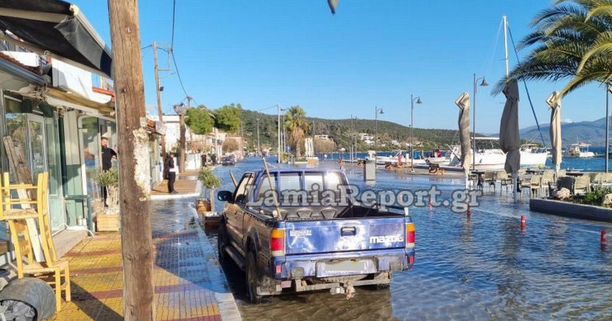 Λαμία: Η θάλασσα βγήκε στη στεριά - Θυελλώδεις άνεμοι και λασποβροχές