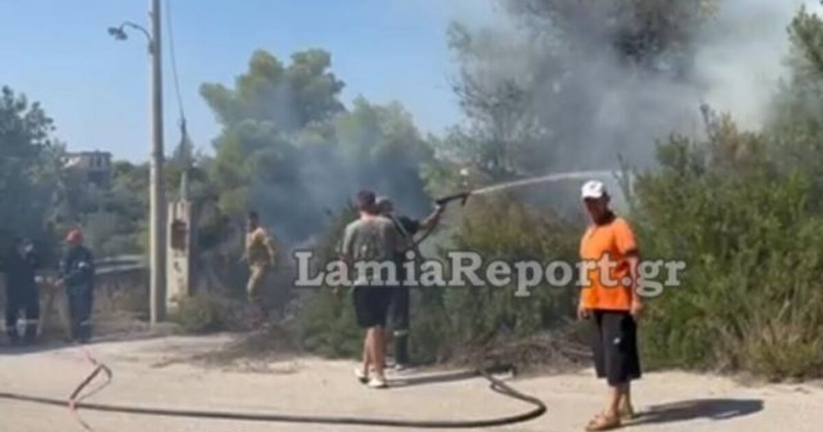 Κάτοικοι και πυροσβέστες πρόλαβαν επικίνδυνη πυρκαγιά που εκδηλώθηκε μέσα στον οικισμό του Θεολόγου στη Λαμία.
