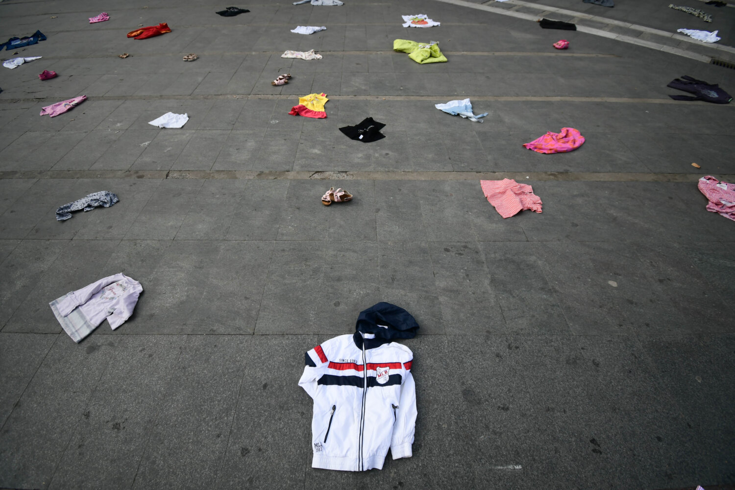 Λάρισα: Άδεια ρουχαλάκια στην κεντρική πλατεία – μήνυμα για τα νεκρά παιδιά στη Γάζα