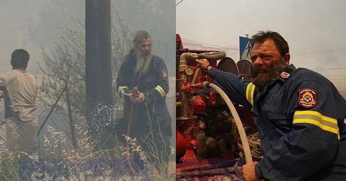 Δύο ιερείς, παραδείγματα προς μίμιση, δίνουν από χθες μάχη μαζί με τους εθελοντες και τους πυροσβέστες στη μεγάλη φωτιά των Βατερών στη Λέσβο.