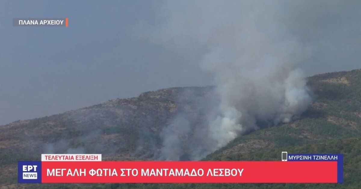 Δύσκολη είναι η πυρκαγιά στη Λέσβο, στην περιοχή μεταξύ Κάπης και Μανταμάδου.