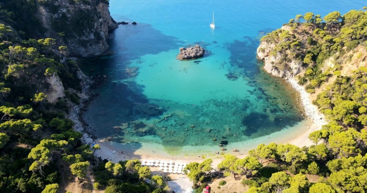 Το κύριο χαρακτηριστικό της παραλίας εκτός από το δάσος που την περιβάλλει είναι ο παρακείμενος βράχος που δεσπόζει. Χρησιμοποιήθηκε ως αποβατικό σημείο των Συμμαχικών στρατευμάτων κατά την λήξη του Β’ Παγκοσμίου Πολέμου.