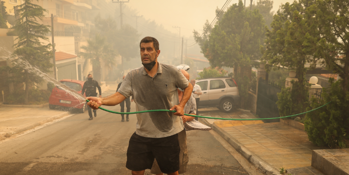«Είδαμε ξαφνικά μία φωτιά όσο είναι μια αγκαλιά ενός ανθρώπου, δεν υπάρχει περίπτωση να πετάχτηκε κουκουνάρι 15 χιλιόμετρα και να σκάσει εκεί», λέει κάτοικος της περιοχής στην κάμερα του CNN Greece.