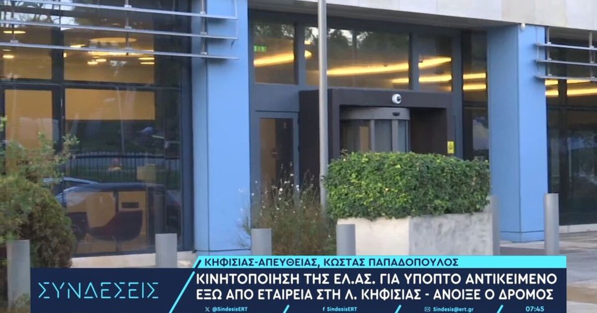 Συναγερμός σήμανε το πρωί έξω από εταιρία στη Λεωφόρο Κηφισίας στο Μαρούσι, καθώς είχε εντοπιστεί ένα ύποπτο αντικείμενο.