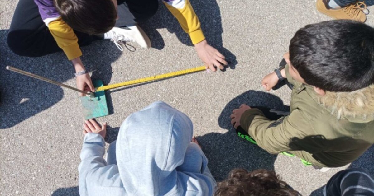 Όλοι οι μαθητές την ίδια ημέρα και ακριβώς την ώρα της άνω ηλιακής μεσουράνησης, δηλαδή τη στιγμή που ο Ήλιος βρίσκεται στο μέγιστο ύψος στον ουρανό, μέτρησαν το μήκος της σκιάς ενός στύλου, τον οποίο είχαν τοποθετήσει στην αυλή του σχολείου τους, ύψους ενάμισι μέτρου.
