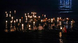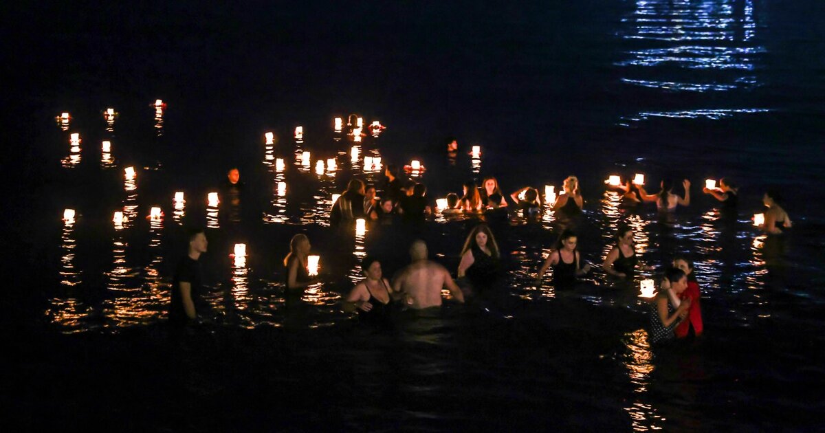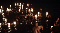 Η εκδήλωση κορυφώθηκε με τους συγγενείς να «απελευθερώνουν» στη θάλασσα φαναράκια, ίσα σε αριθμό με τα θύματα της μεγάλης τραγωδίας και να φωνάζουν «αθάνατοι».