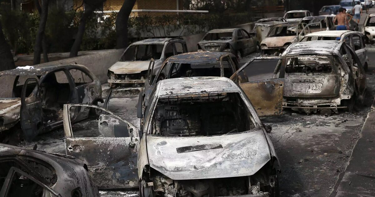 Κουφάρια καμένων αυτοκινήτων. Μάτι, 2018