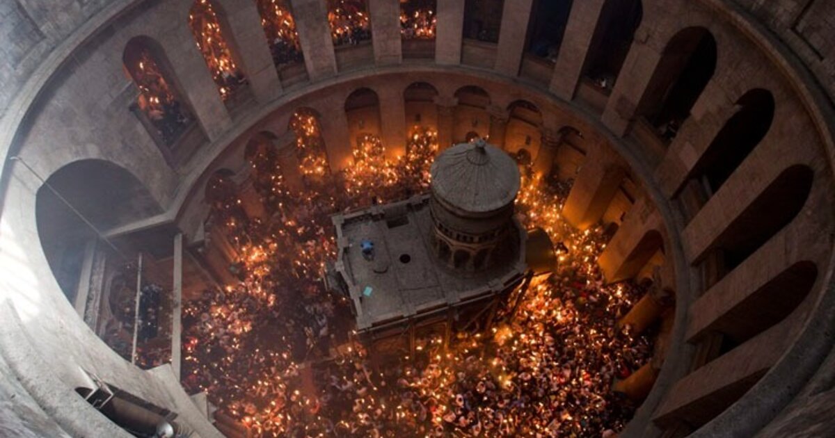 Με λαμπρότητα, παρουσία πλήθους πιστών, τελέστηκε στον Πανίερο Ναό της Αναστάσεως στα Ιεροσόλυμα η λειτουργία της Αφής του Αγίου Φωτός.