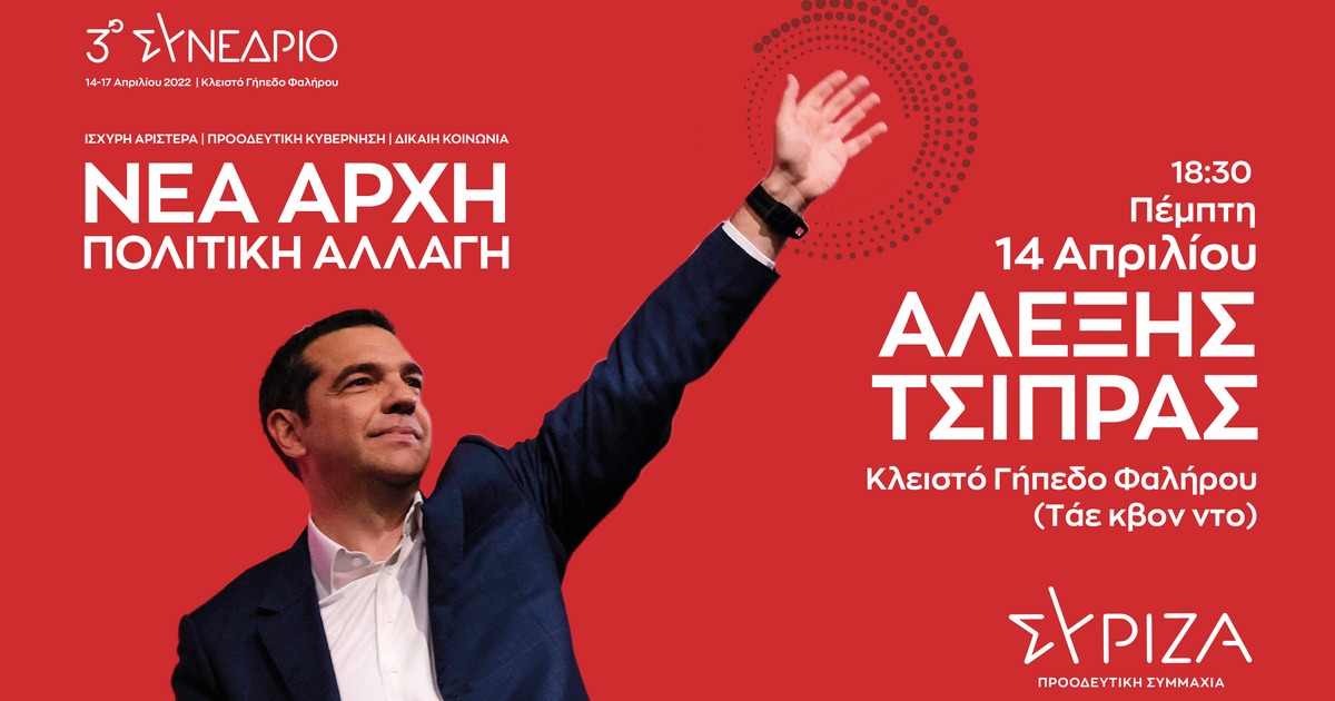 Ξεκινάει την Πέμπτη το 3ο Συνέδριο του ΣΥΡΙΖΑ-Προοδευτική Συμμαχία που θα διαρκέσει από τις 14 έως τις 17 Απριλίου στο Κλειστό Γήπεδο Φαλήρου (Τάε Κβο Ντο).
