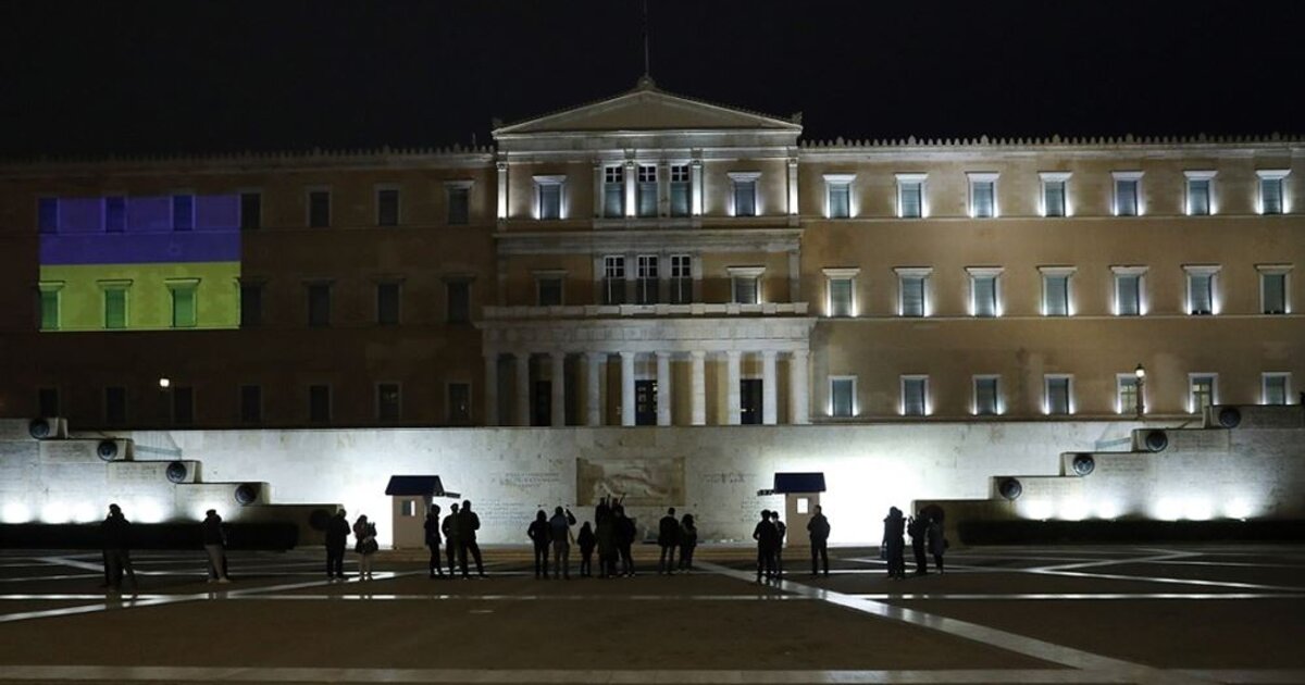 Με τη σημαία της Ουκρανίας φωταγωγήθηκε η Βουλή των Ελλήνων