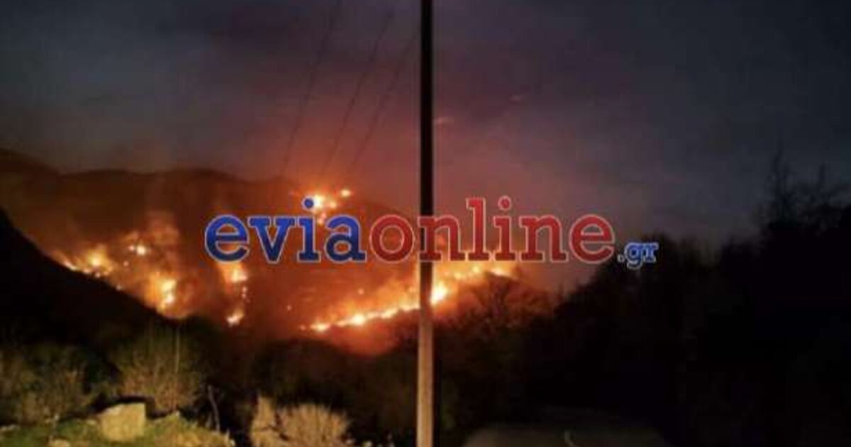 Μεγάλη φωτιά σε δασική έκταση στην Κάρυστο