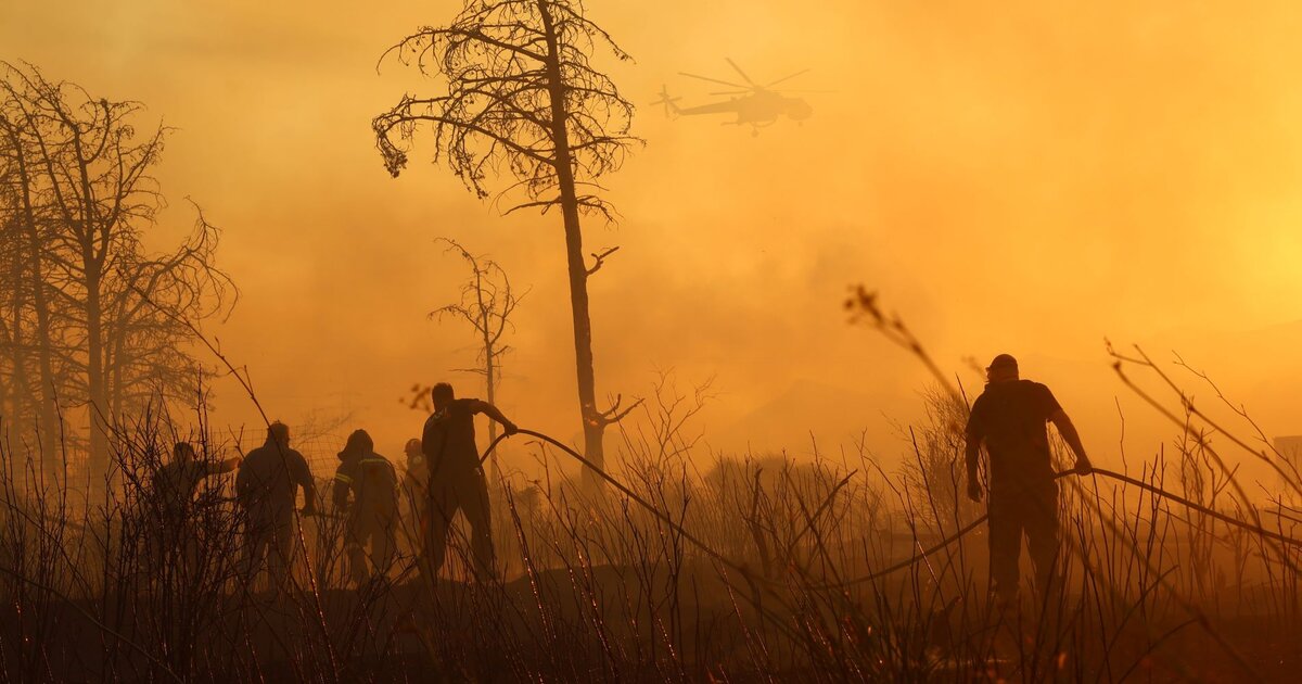 Στην περιοχή υπάρχει πολύ πυκνός καπνός, ενώ η ατμόσφαιρα είναι αποπνικτική και το θερμικό φορτίο αρκετά υψηλό. Ως εκ τούτου υπάρχουν αναζωπυρώσεις, κυρίως λόγω του ανέμου.
