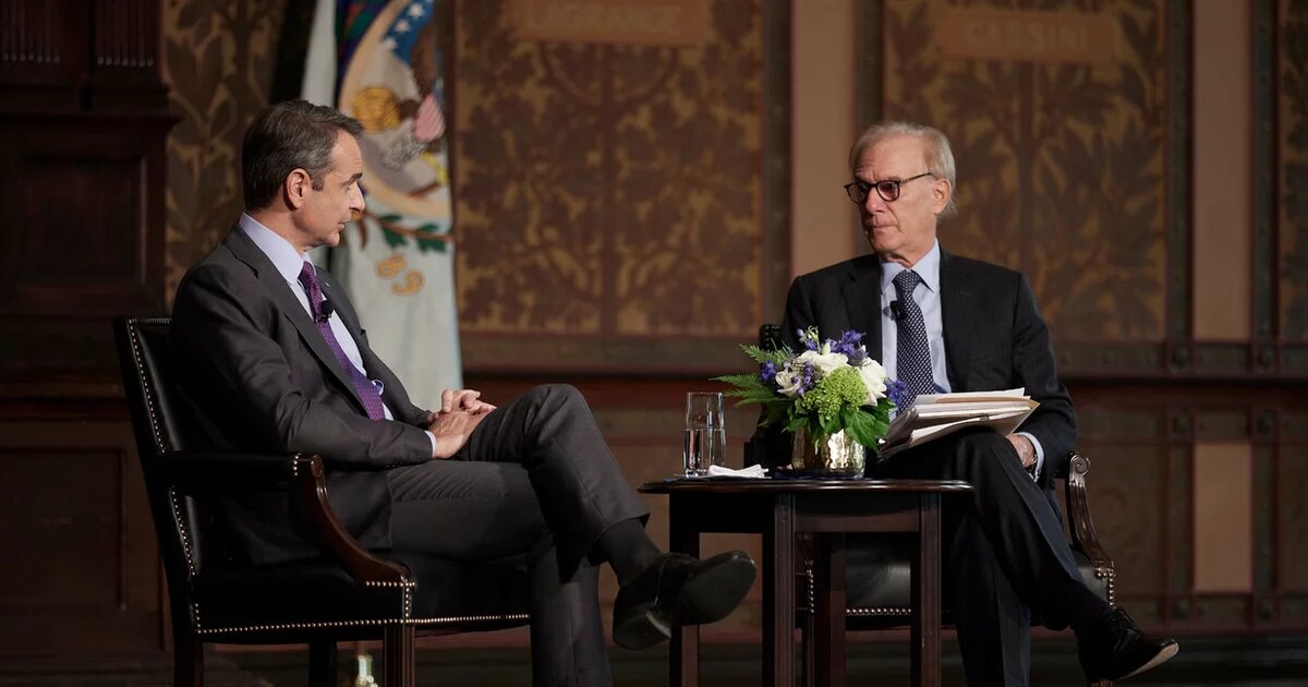 Λίγο πριν τη συνάντησή του με τον πρόεδρο Τζο Μπάιντεν στο Λευκό Οίκο (22:30 ώρα Ελλάδος) ο Κυριάκος Μητσοτάκης έλαβε μέρος σε ανοιχτή συνομιλία στο πανεπιστήμιο Georgetown University με τον δημοσιογράφο Ντέιβιντ Ιγκνάτιους της The Washington Post.