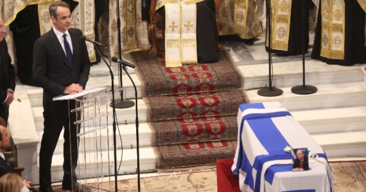 «Μαχητή κατά της δικτατορίας και άξιο υπηρέτη της δημοκρατίας» χαρακτήρισε ο πρωθυπουργός, Κυριάκος Μητσοτάκης, τον πρώην πρωθυπουργό Κώστα Σημίτη, προσφωνώντας τον επικήδειο λόγο του.