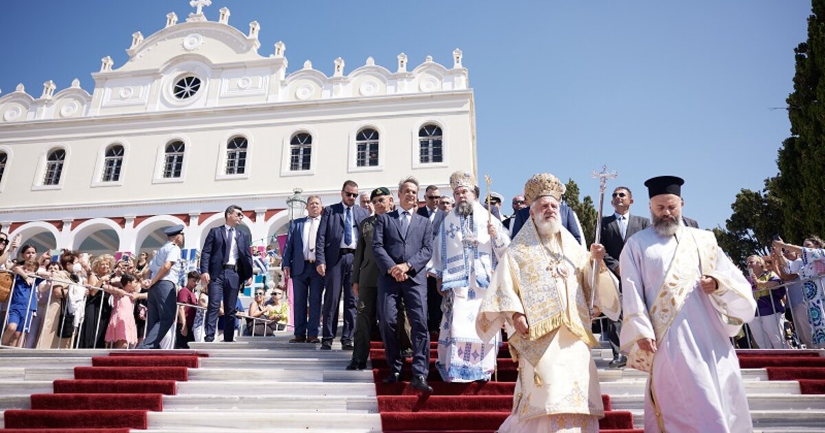 Μήνυμα αισιοδοξίας για το μέλλον της χώρας εξέπεμψε ο πρωθυπουργός Κυριάκος Μητσοτάκης σήμερα από την Τήνο μετά την ολοκλήρωση των εορταστικών εκδηλώσεων με την λιτάνευση της εικόνας της Θεοτόκου.