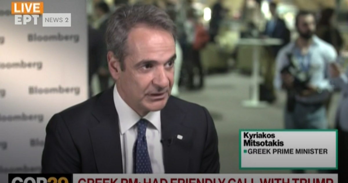 Για την κλιματική αλλαγή και τις πρωτοβουλίες που πρέπει να ληφθούν, τη νέα θητεία του Ντόναλντ Τραμπ και τις σχέσεις των ΗΠΑ με την Ελλάδα μίλησε ζωντανά στο Bloomberg από το Μπακού όπου και βρίσκεται ο Κυριάκος Μητσοτάκης.